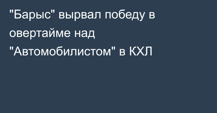 Астанинский «Барыс» и екатеринбургский «Автомобилист» определили победителя в матче регулярного чемпионата Континентальной хоккейной лиги, передают Vesti.kz.Основное время встречи в Астане завершилось со счётом 2:2. При этом хозяева вели 2:0 после точных бросков Динмухамеда Кайыржана (24-я минута) и Мэйсона Морелли (29-я), но впоследствии астанчане позволили отыграться сопернику, у которого шайбы забросили Кёртис Волк (32-я) и Александр А.