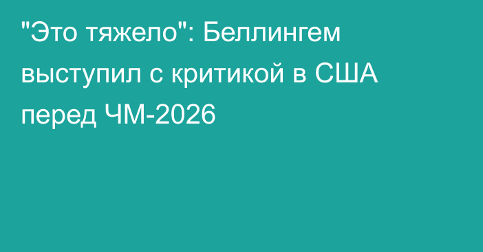 Полузащитник мадридского «Реала» Джуд Беллингем раскритиковал качество полей в США, где в эти дни проходит Клубный чемпионат мира, сообщают Vesti.kz.Англичанин отметил, что газоны оставляют желать лучшего и мешают показывать свой максимум.«Качество полей не очень хорошее. Для коленей это тяжело. Мяч не держится, не отскакивает.