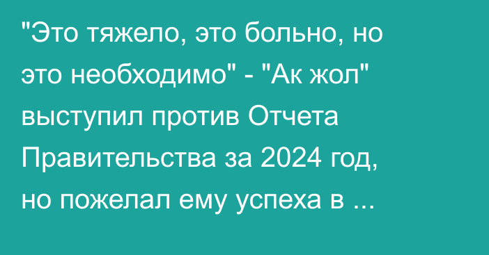 akzhol.kz, 18 июняФракция «Ак жол» будет голосовать против Отчета правительства за 2024 год.Во-первых, в ходе презентации отчета выявился ряд серьезных отступлений от собственных заверений правительства.Так, при утверждении проекта бюджета на 2024-2026 г.г., правительство заявляло о плане с 2025 г. – полностью отказаться от целевых трансфертов из Нацфонда.