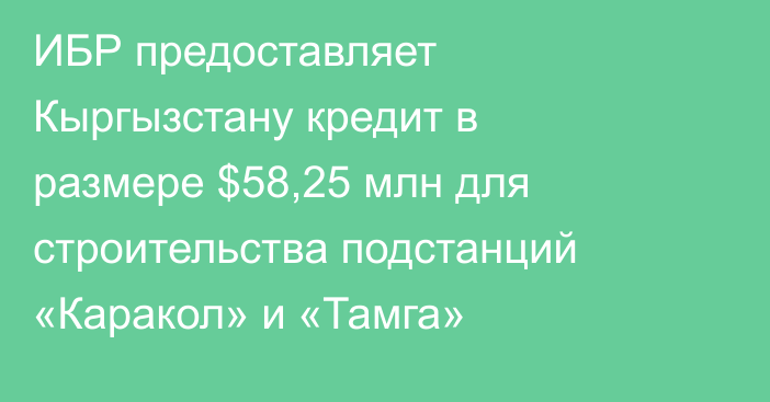 Tazabek — Кабинет министров 29 мая 2025 года одобрил заключение по Кредитному соглашению между Кыргызстаном и Исламским банком развития (ИБР), подписанному 22 апреля в Вашингтоне.Документ касается реализации проекта по строительству подстанций «Каракол» и «Тамга», а также ЛЭП 220 кВ протяженностью 90 км между ними.Общая стоимость проекта составляет $60,25 млн, из которых $58,25 млн – льготный кредит ИБР под 1,5% сроком на 25 лет (льготный период – 7 лет).$2 млн обеспечит Кыргызстан за счёт налогов, издержек на земельные работы и разрешения.