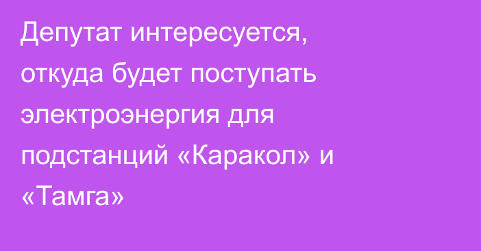 Tazabek — Откуда будем брать электроэнергию для подстанций «Каракол» и «Тамга»? Об этом сегодня, 2 июня, спросил депутат Бекмурза Эргешов на заседании Комитета ЖК по бюджету и фискальной политике.«Электроэнергия откуда будет поступать?» — спросил депутат. Замминистра энергетики Насипбек Керимов ответил, что электроэнергия в эти подстанции будет поступать в рамках общей генерации.«В будущем, когда запустим солнечные, ветряные электростанции и малые ГЭС.