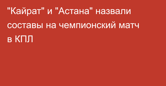 Стали известны составы «Кайрата» и «Астаны» на матч заключительного, 26-го тура казахстанской премьер-лиги, передают Vesti.kz.Встреча пройдёт сегодня, 26 октября, в Алматы и начнётся в 15:00. Победитель матча станет чемпионом страны, хотя хозяев поля устроит и ничья. На данный момент в активе алматинцев 58 очков, а на счету астанчан — 56.Состав «Кайрата«Состав «Астаны«Ранее ИИ назвал точный счёт матча «Кайрат» — «Астана» за золото КПЛ.