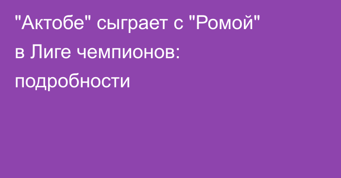 Женский футбольный клуб «Актобе» узнал соперников по квалификации Лиги чемпионов-2025/26, сообщают Vesti.kz.Соревнования пройдут в формате мини-турнира. «Актобе» в полуфинале группы 2 сыграет с итальянской «Ромой».В другом матче сыграют «Спарта» Прага (Чехия) — «Нордшелланд» (Дания). Оба матча состоятся 27 августа.Финал и матч за третье место пройдут 30 августа.Победители групп пробьются в третий отборочный раунд Пути представителей лиг.