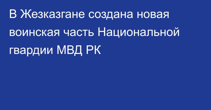 Согласно документу, новая воинская часть будет дислоцироваться в городе Жезказган Улытауской области, передает vera.kz25 апреля 2025 года Правительством Республики Казахстан принято постановление «О некоторых вопросах Национальной гвардии Республики Казахстан», в соответствии с которым создано республиканское государственное учреждение — воинская часть 5575 Национальной гвардии МВД РК.
