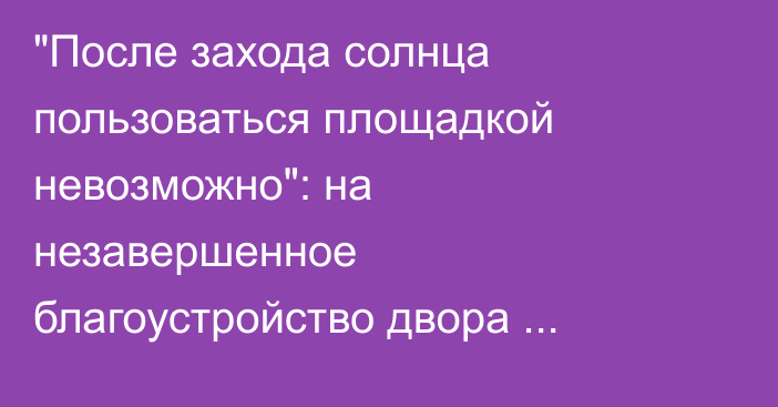 В редакцию Arnapress.kz обратилась жительница 35-го квартала в Семее с жалобой на затянувшееся благоустройство детской площадки.По ее словам, в 2024 году на месте бывшего футбольного поля начались работы по обустройству территории – во дворе 25-го дома установили детскую площадку и спортивные снаряды.