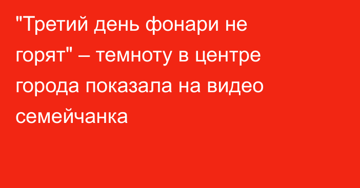 Семейчанка пожаловалась в редакцию Arnapress.kz на отсутствие освещения в одном из центральных районов.«Район магазина «12 месяцев», рядом гимназия № 37, чуть дальше – 28-я школа, третий день фонари не горят, темно. Как дорогу переходить людям?» – задается вопросом семейчанка.Она выразила надежду, что к моменту выхода школьников с каникул проблему решат, и детям не придется ходить по темноте.«Район магазина «12 месяцев», рядом гимназия № 37, чуть дальше – 28-я школа, третий день фонари не горят, темно.