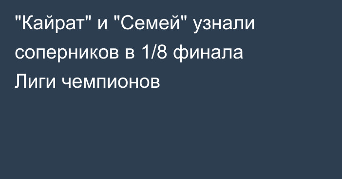 Сегодня, 6 ноября, в швейцарском Ньоне состоялась жеребьёвка 1/8 финала Лиги Чемпионов УЕФА по футзалу, передаёт Sports.kz.Алматинскому «Кайрату» достался бельгийский «Спортинг-Андерлехт», в то время как «Семею» предстоит встретиться с польским «Пяст Гливице».Первые матчи 1/8 финала запланированы на 24 ноября, ответные состоятся 5 декабря.