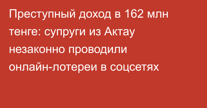 Департаментом АФМ по Мангистауской области проводится расследование по факту незаконной предпринимательской деятельности, передает Arnapress.kz со ссылкой на пресс-службу Агентства РК по финансовому мониторингу.В Актау супружеская пара, имея свыше 850 тысяч подписчиков в социальных сетях Instagram, TikTok и Telegram, проводила масштабные онлайн-лотереи.Не являясь зарегистрированными операторами лотереи, они организовывали розыгрыши автомобилей, квартир и других ценных призов.Участники приобретали «билеты» (цифровые номера) стоимостью от 500 до 50 000 тенге.
