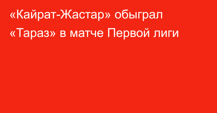 Алматинский «Кайрат-Жастар» в матче двадцать третьего тура Первой лиги проиграл «Таразу» со счетом 1:3, сообщает Sports.kz.«Тараз» — «Кайрат-Жастар» 3:1 (2:1)Голы: Кеулимжай 7 (1:0), Тойбеков 45+1 (2:0), Туякбаев 45+2 (2:1), Сулей 73 (3:1).