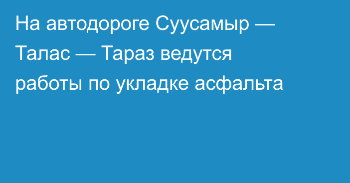 Tazabek — На автодороге Суусамыр — Талас — Тараз ведутся работы по укладке асфальта. Об этом сообщает пресс-служба Министерства транспорта и коммуникаций.По данным ведомства, работы по укладке асфальта ведутся на участке 12-17 км автодороги, протяжённостью 5 км. В настоящее время укладка асфальта завершена на 3 км.«Строительные работы осуществляются дорожно-эксплуатационным предприятием (ДЭП) №36.