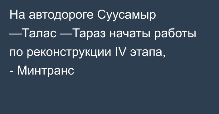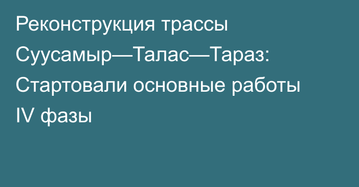 Tazabek — На автодороге Суусамыр—Талас—Тараз (участок 104,6–197,6 км) стартовали основные работы IV фазы реконструкции. Об этом сообщила пресс-служба Министерства транспорта и дорог.По данным ведомства, подрядная организация обеспечила площадку более чем 80 единицами спецтехники, число машин и работников увеличивается ежедневно.ведётся выравнивание и расширение обочин;производится перенос водопроводных труб и демонтаж бетонных опор ЛЭП;монтируются два асфальтобетонных завода, один бетонный и две камнедробильные установки.В настоящее время на объекте задействованы 65 строителей; по мере развертывания техники штат планируется расширить.По завершении проекта трасса обеспечит более высокую пропускную способность и улучшит транспортную связь между Кыргызстаном и Казахстаном.