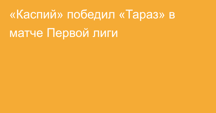 Актауский «Каспий» в матче шестнадцатого тура Первой лиги обыграл «Тараз» со счетом 2:1, сообщает Sports.kz.«Каспий» — «Тараз» 2:1 (0:0)Голы: Жаксылыков (автогол) 58 (1:0), Таипов 63 (2:0), Нуралы 69 (2:1). «Жетысай» разгромил «SD Family» в матче Первой лиги