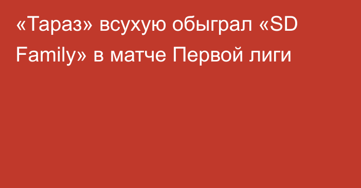 Астанинский «SD Family» в матче восемнадцатого тура Первой лиги всухую проиграл «Таразу» со счетом 0:2, сообщает Sports.kz.«SD Family» — «Тараз» 0:2 (0:1)Голы: Кемелбек 20 (0:1), Лесбек 90’+3′ (0:2).