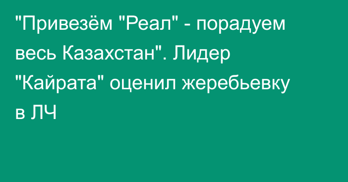 Алматинский «Кайрат» гарантированно встретится с двумя сильнейшими клубами Европы на общем этапе Лиги чемпионов, передают Vesti.kz. Продолжение •. Экс-игрок сборной Казахстана предупредил «Кайрат» после выхода в общий этап ЛЧ. 27 августа 22:50 •. Выход «Астаны» в ЛЧ-2015 или выход «Кайрата» в ЛЧ-2025: что круче и легендарнее?