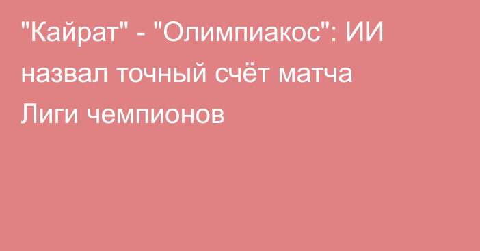 Искусственный интеллект дал прогноз на матч общего этапа Лиги чемпионов между алматинским «Кайратом» и греческим «Олимпиакосом», передают Vesti.kz.Встреча состоится 9 декабря на «Астана Арене» и начнётся в 20:30 по местному времени.Прогноз от ИИ