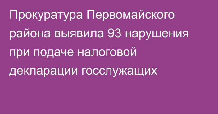 Прокуратура Первомайского района выявила 93 нарушения при подаче налоговой декларации госслужащих