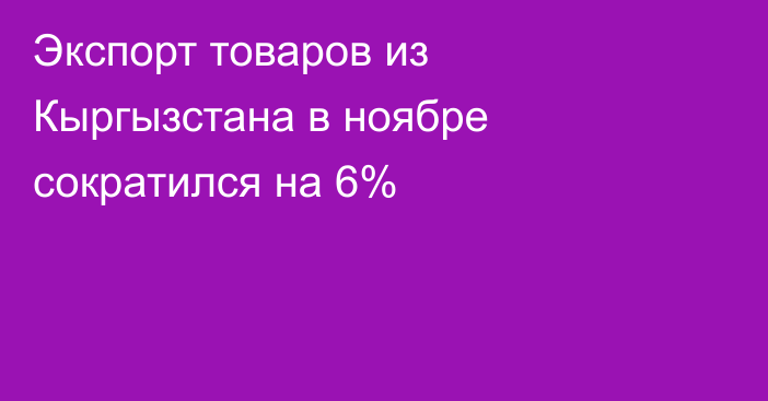 Экспорт товаров из Кыргызстана в ноябре сократился на 6%