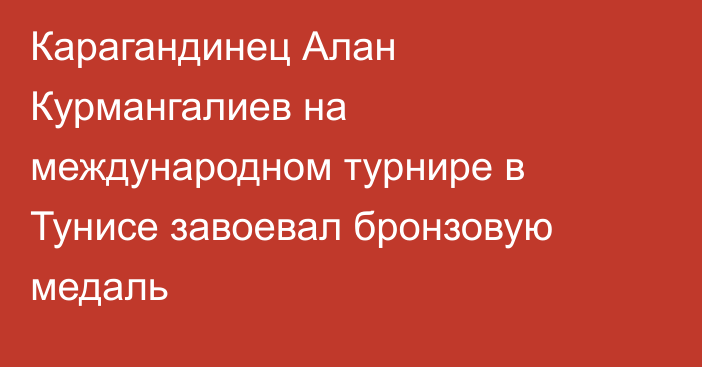 Карагандинец Алан Курмангалиев на международном турнире в Тунисе завоевал бронзовую медаль