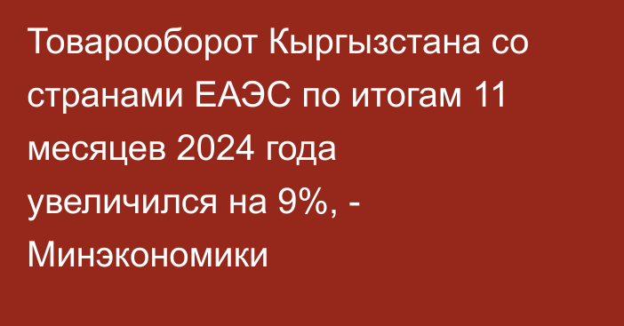 Товарооборот Кыргызстана со странами ЕАЭС по итогам 11 месяцев 2024 года увеличился на 9%, - Минэкономики
