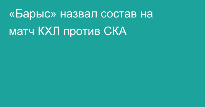 «Барыс» представил состав на выездной матч КХЛ против СКА из Санкт-Петербурга, передает Sports.kz со ссылкой на пресс-службу астанинского клуба.