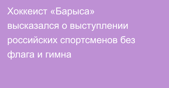 Хоккеист «Барыса» высказался о выступлении российских спортсменов без флага и гимна