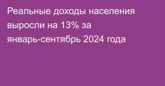 Объем реальных денежных доходов населения, исчисленный с учётом индекса потребительских цен, в январе-сентябре 2024 года в целом по республике составил 653,6 млрд сомов и по сравнению с соответствующим периодом предыдущего года увеличился на 13%