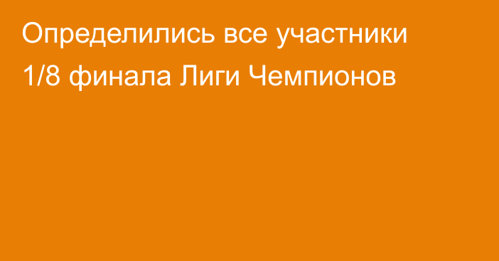Жеребьёвка 1/8 финала Лиги Чемпионов состоится в пятницу, 21 февраля. Первые матчи запланированы на вторник, 4 марта, ответные — на 11 марта.