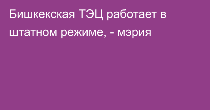 Бишкекская ТЭЦ работает в штатном режиме, - мэрия