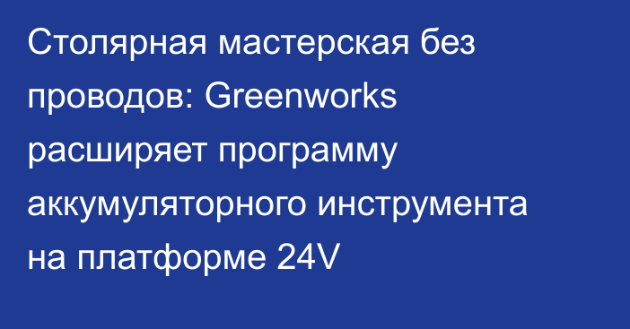 Столярная мастерская без проводов: Greenworks расширяет программу аккумуляторного инструмента на платформе 24V