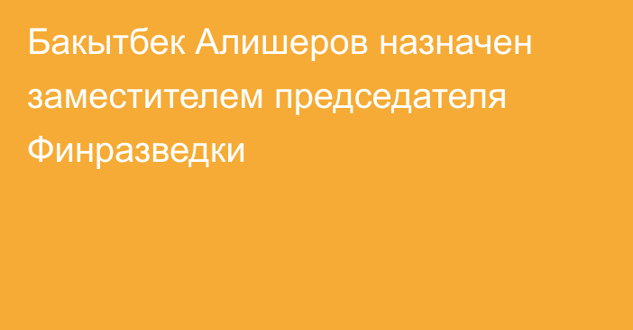 Tazabek — Бакытбек Алишеров назначен заместителем председателя Государственной службы финансовой разведки при Министерстве финансов. Об этом сообщила пресс-служба ведомства.