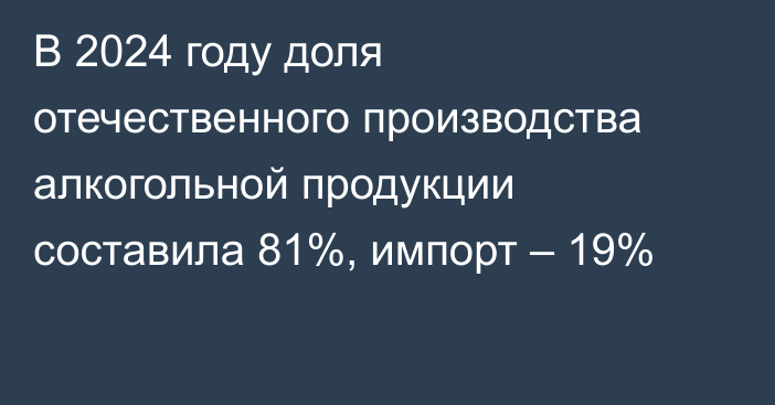 По данным, в 2023 году соотношение составляло 82% на 18%, при общем объеме рынка алкогольной продукции 85 млн 293 тыс. литров.