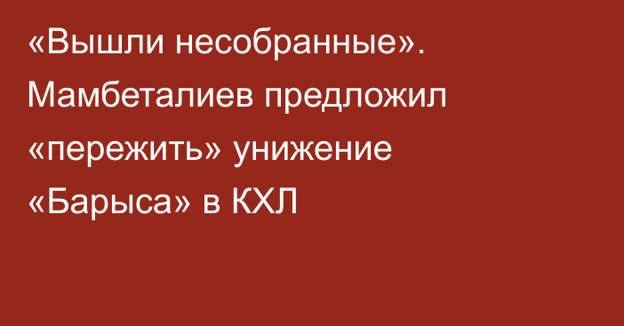 Главный тренер «Барыса» Галым Мамбеталиев прокомментировал матч против «Трактора», который завершился разгромным поражением столичной команды со счётом 0:8, передает Sports.kz со ссылкой на Shaiba.kz.
