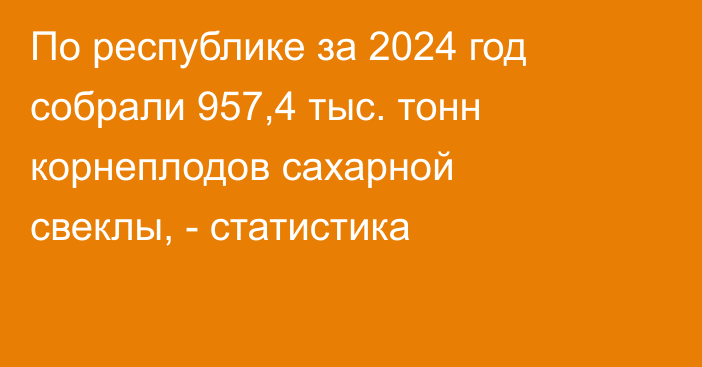 По республике за 2024 год собрали 957,4 тыс. тонн корнеплодов сахарной свеклы, - статистика