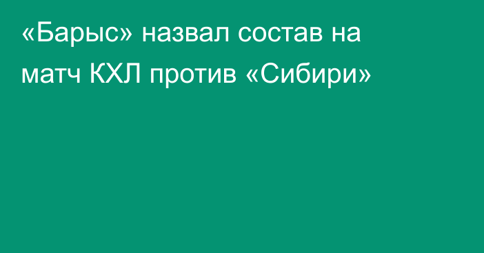 «Барыс» назвал состав на матч КХЛ против «Сибири»