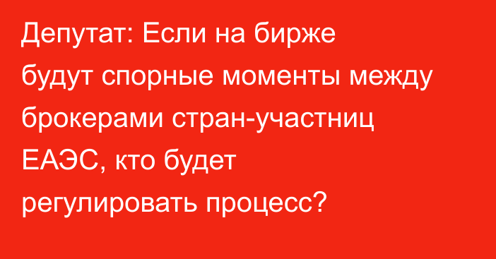 Депутат: Если на бирже будут спорные моменты между брокерами стран-участниц ЕАЭС, кто будет регулировать процесс?