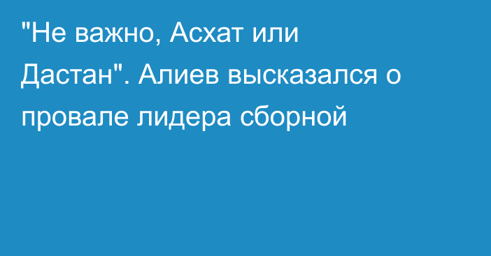 Но ребята, сегодня важнее не Асхат Тагыберген, а сборная Казахстана. Речь о трех очках для сборной Казахстана. Не важно, кто их принесет. Асхат, Галымжан или Дастан... Важнее — три очка. Потом нужно садиться и делать выводы», — считает Алиев.