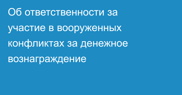 За участие в вооруженных конфликтах Уголовным кодексом Республики Казахстан предусмотрены меры уголовной ответственности.