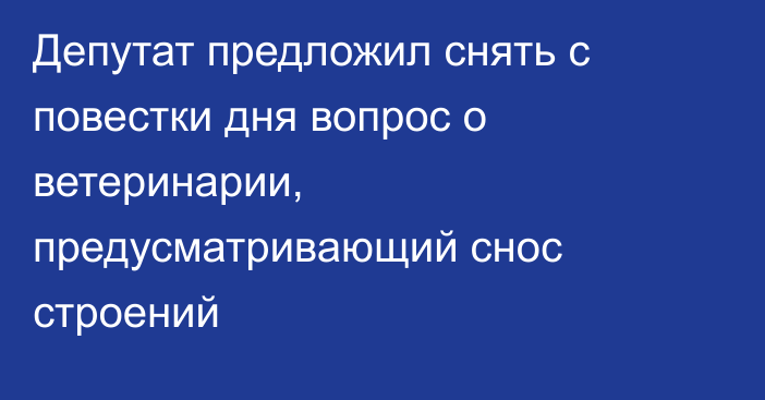 Депутат предложил вновь рассмотреть данный законопроект, сняв с повестки .