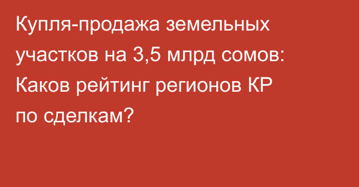 Купля-продажа земельных участков на 3,5 млрд сомов: Каков рейтинг регионов КР по сделкам?