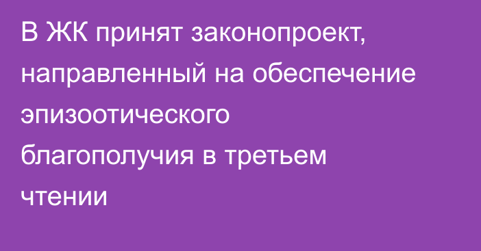 В ЖК принят законопроект, направленный на обеспечение эпизоотического благополучия в третьем чтении
