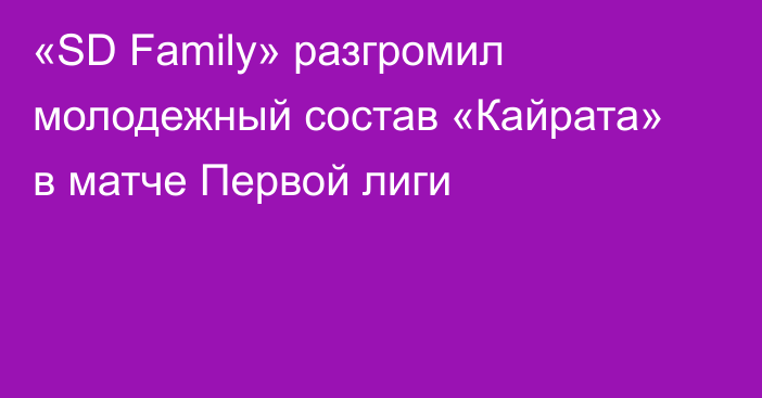 Столичный «SD Family» в матче первого тура Первой лиги переиграл алматинский «Кайрат-Жастар» со счетом 3:0, передает Sports.kz со ссылкой на KazFootball.kz.