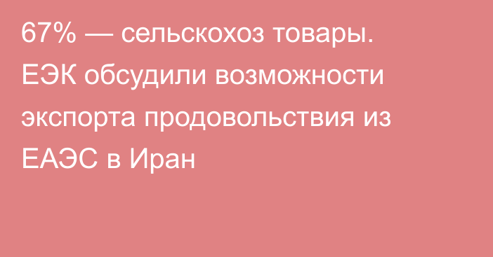 Преференциальный охват соглашения покрывает 67% сельскохозяйственной товарной номенклатуры, на долю которой приходится 98% сельскохозэкспорта ЕАЭС в Иран.