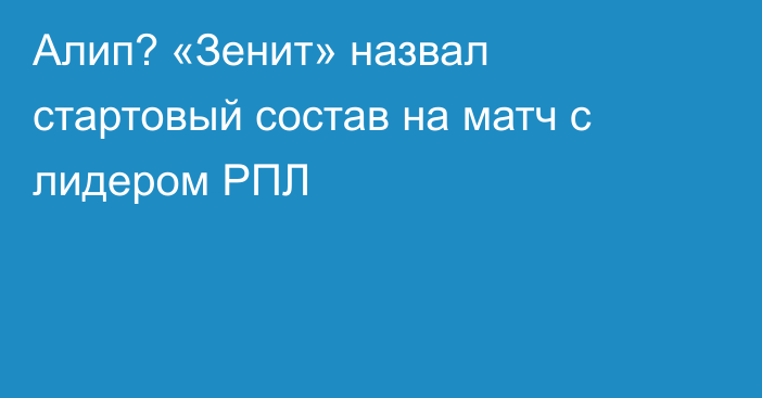 Прямая трансляция матча РПЛ «Зенит» — «Краснодар» с возможным участием Алипа
