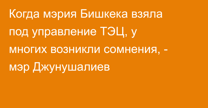 Кроме того, он добавил, что взяв под свое управление ТЭЦ Бишкека, мэрия сэкономила 701 млн сомов.