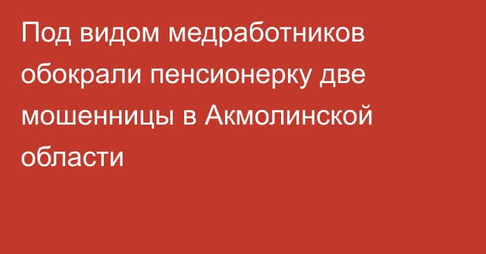 Представившись медицинскими работниками, они предложили пенсионерке провести обследование за плату в 5 тысяч тенге. Пока одна из них измеряла давление хозяйке квартиры, вторая проникла в комнату и похитила деньги.