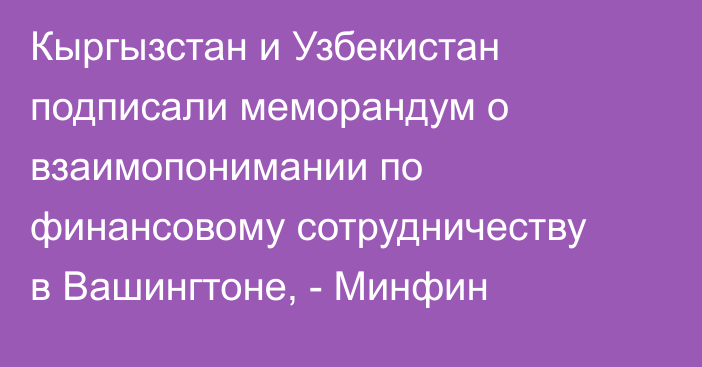 Tazabek — В рамках ежегодных собраний Всемирного банка и Международного валютного фонда в Вашингтоне министр финансов КРАлмаз Бакетаев подписал меморандум о взаимопонимании по сотрудничеству между Министерством финансов КР и Министерством экономики и финансов РУз. Об этом сообщает пресс-служба Минфина.
