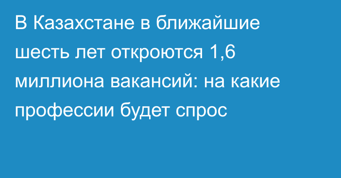 В Казахстане в ближайшие шесть лет откроются 1,6 миллиона вакансий: на какие профессии будет спрос