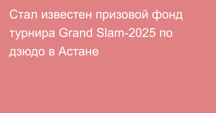 Опубликована общая сумма призового фонда мирового турнира серии Grand Slam 2025, который пройдет с девятого по 11 мая в Астане, передает Sports.kz со ссылкой на Asia-Plus.