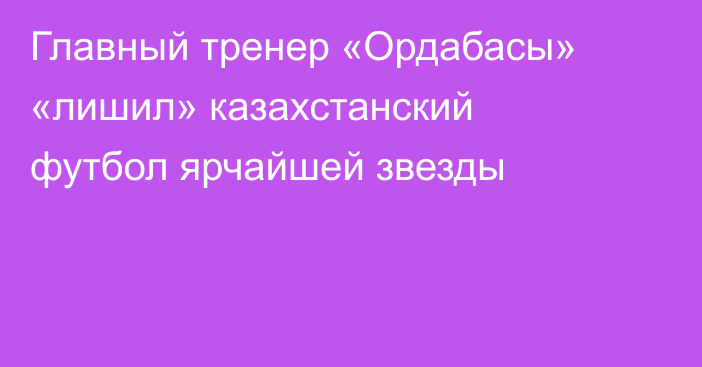 Главный тренер «Ордабасы» «лишил» казахстанский футбол ярчайшей звезды