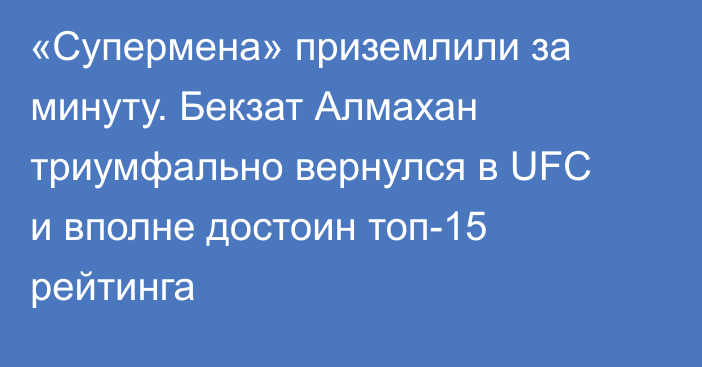Все-таки двукратный чемпион реалити-шоу The Ultimate Fighter отличался своей стойкостью и за всю карьеру его никто не мог нокаутировать. До сегодняшнего дня. Понятно, что для самого Бекзата важно было одержать яркую победу после стартового поражения в промоушене год назад, когда матчмейкеры UFC явно погорячились, выводя Алмахана сразу на Умара Нурмагомедова. Да и там Умару было тяжело и именно Бекзат стал тем, кто впервые отправил Нурмагомедова в нокдаун.